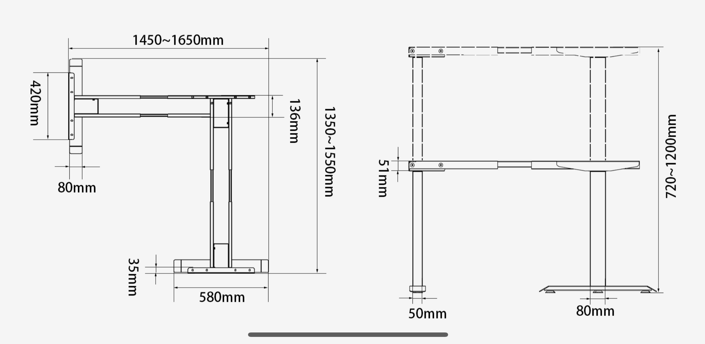 | Iron Frame Length | 1450~1650mm/1350~1550mm |